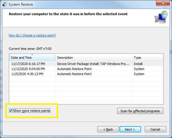 ii. Cara Restore Windows vii ke Tanggal Sebelumnya