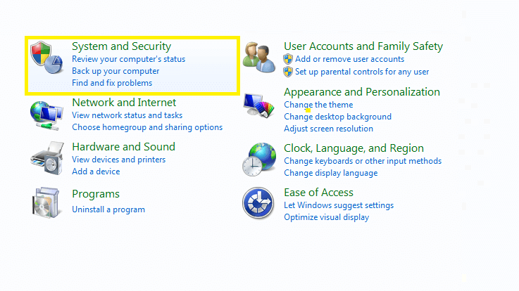 - Pertama, masuk ke Control Panel lalu pilih halaman System and Security